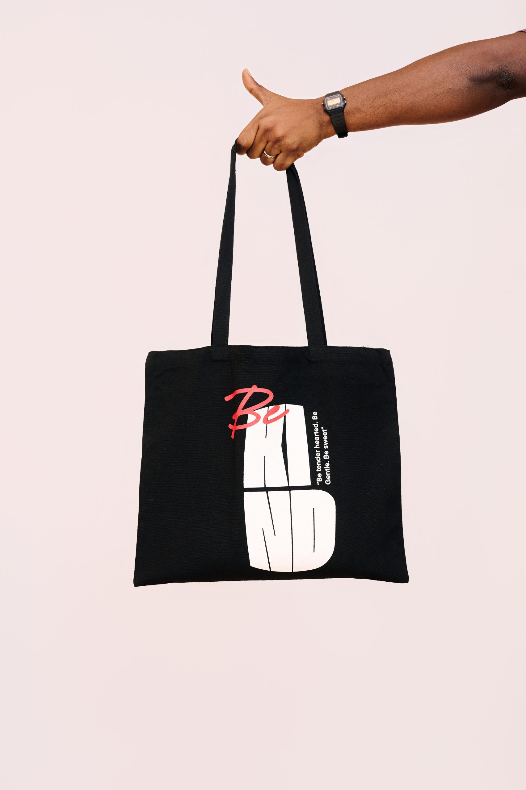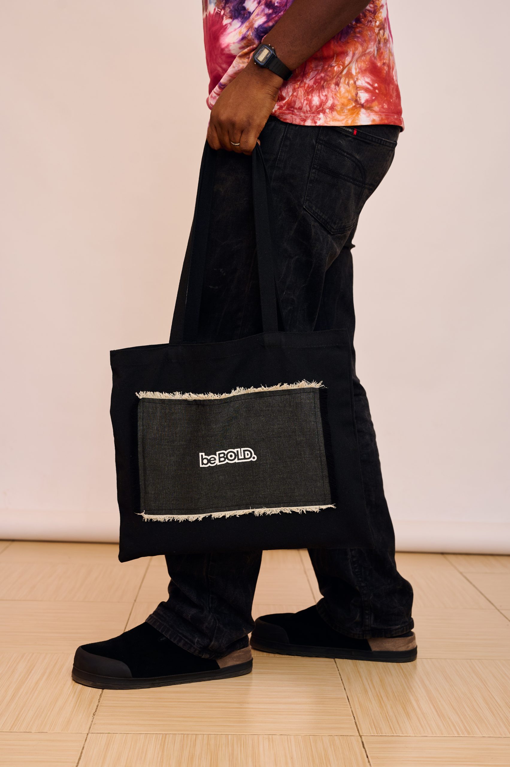 Made from quality Oxford cloth, sturdy 300D fabric, and denim details, this tote is built for everyday life. Light, versatile, and easy-going, it holds your essentials while reminding you to be present and kind.Available in classic black, it’s a simple call to action and to carry purpose wherever you go.Carry it. Become it. BeBOLD.